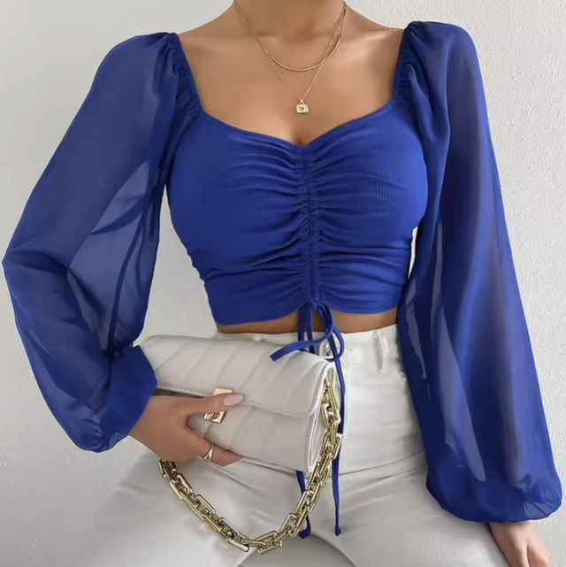 Crop manche transparente Bleu